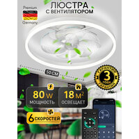 Светодиодная люстра нимб с вентилятором, пультом ДУ 80W, белый