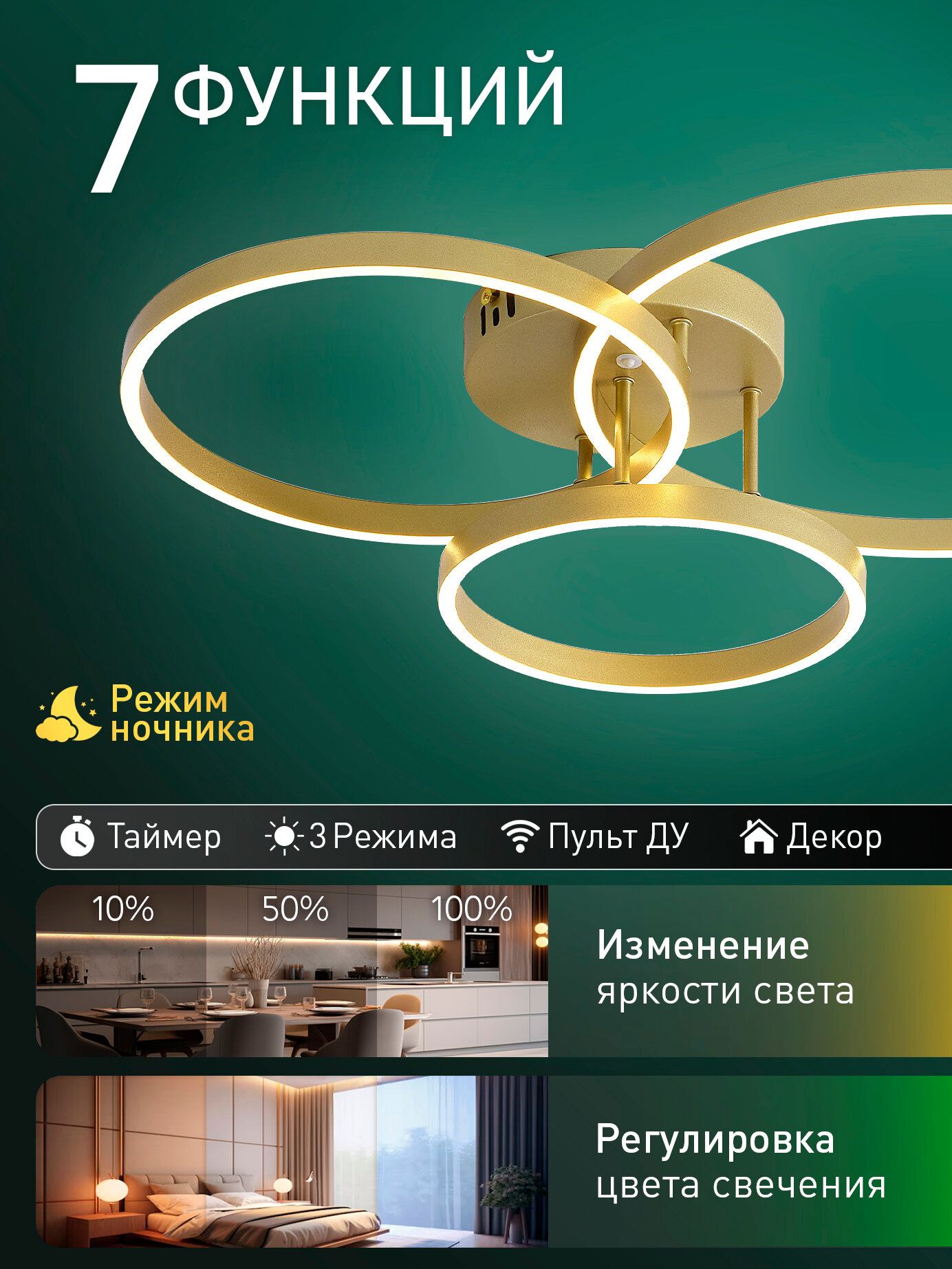 Купить Светодиодная люстра нимбы с пультом ДУ 120W, золото, LED с доставкой по всей России. Светодиодная люстра нимбы с пультом ДУ 120W, золото, LED: сравнение цен, характеристики, фото, актуальное наличие и цены.