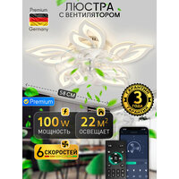Светодиодная люстра с вентилятором, пультом ДУ 100W, белый