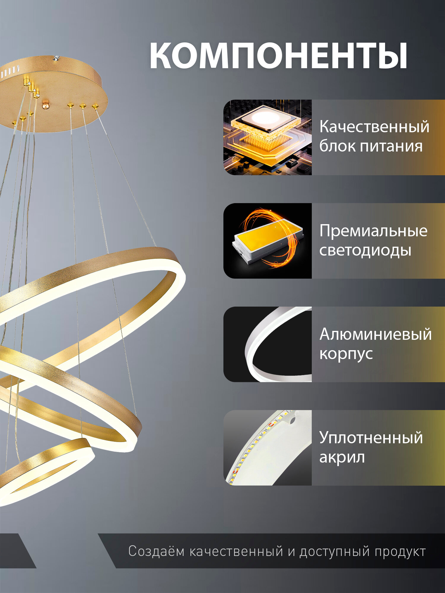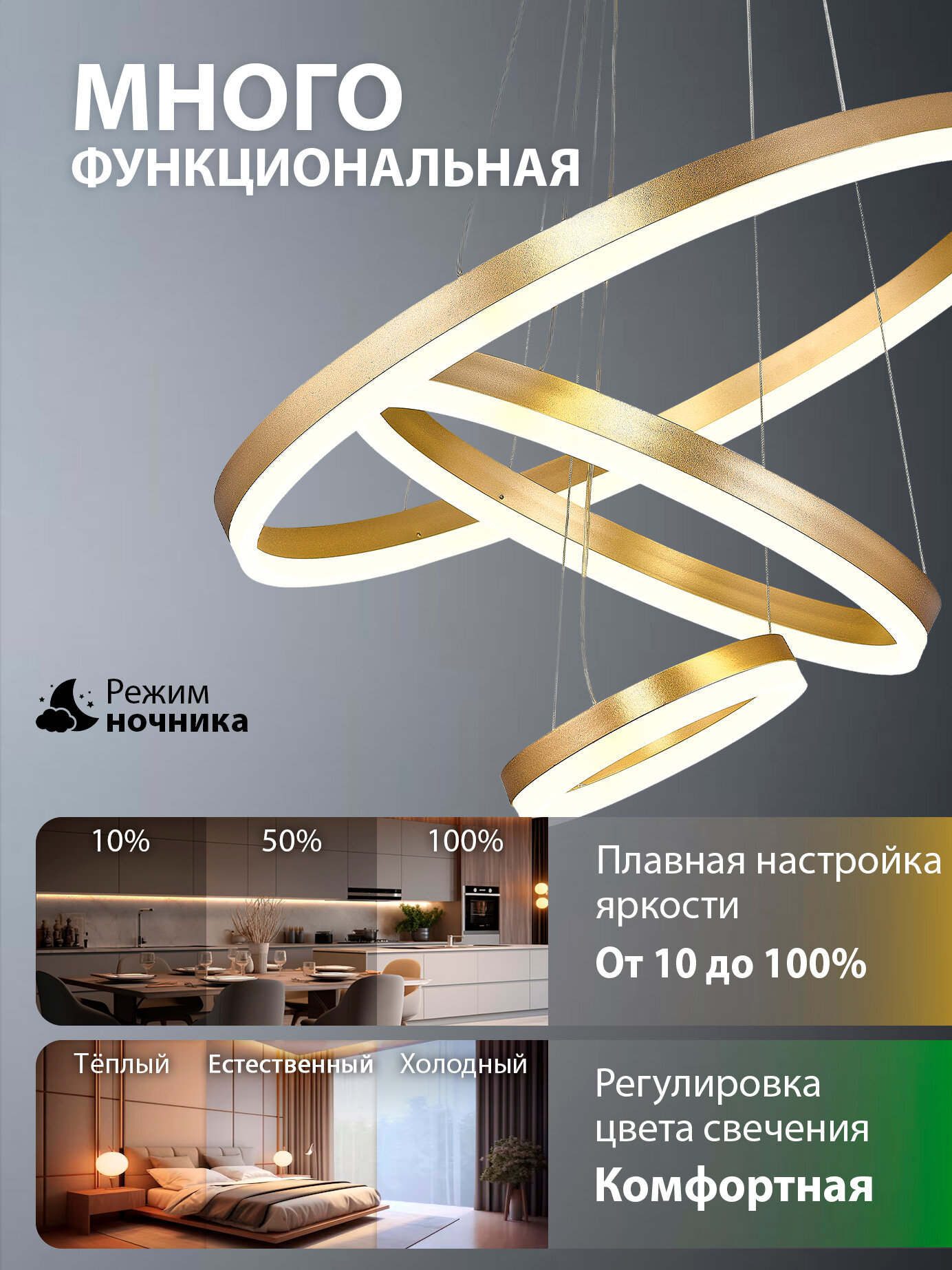 Купить Светодиодная люстра тройной нимб с пультом ДУ, 140W, золотой, LED с доставкой по всей России. Светодиодная люстра тройной нимб с пультом ДУ, 140W, золотой, LED: сравнение цен, характеристики, фото, актуальное наличие и цены.