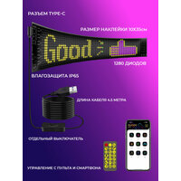 Комплект включает: силиконовый светодиодный экран размером 35*10 см, 4,5-метровый USB-кабель, пульт дистанционного управления и двусторонний скотч.