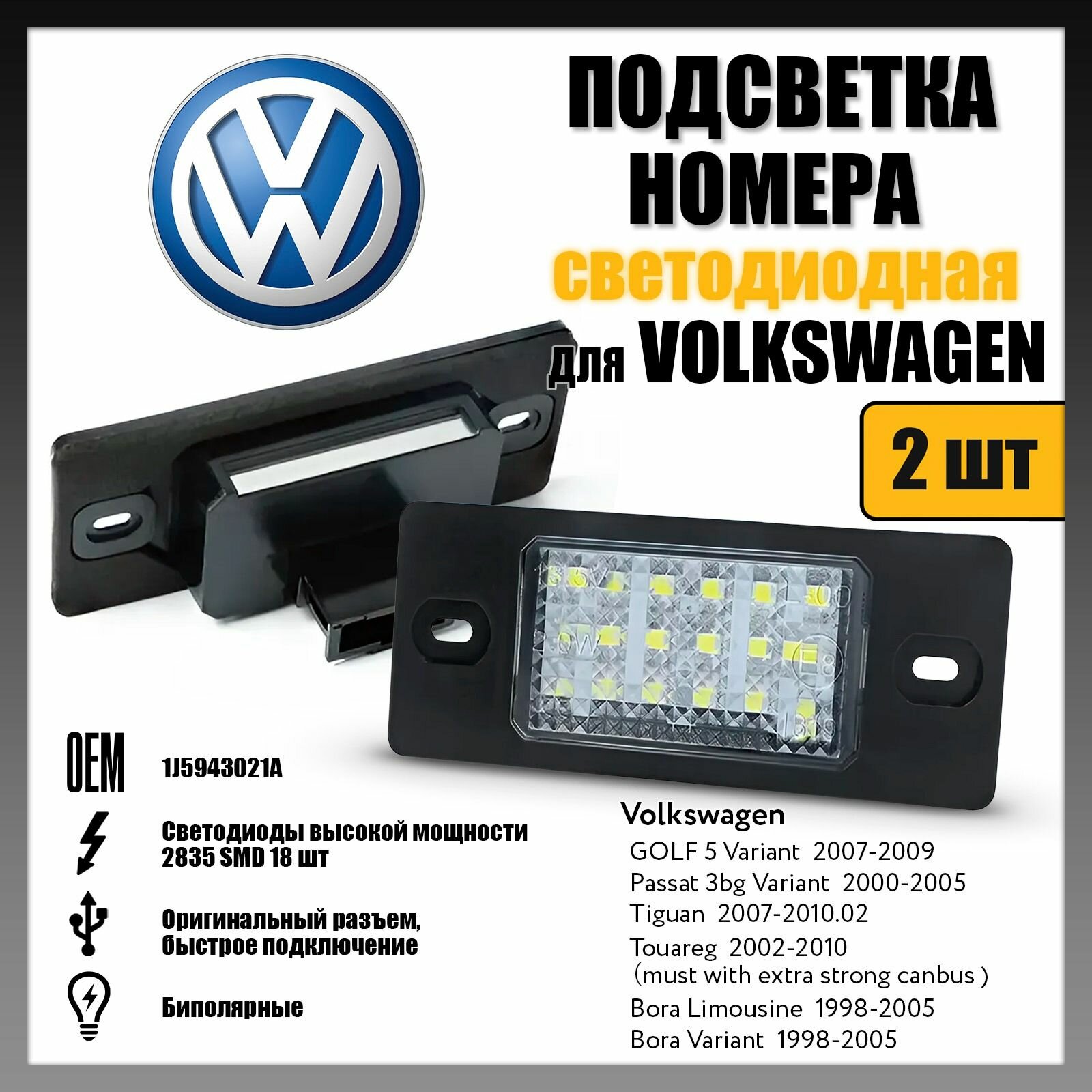 Светодиодная подсветка номера для Volkswagen Touareg/Passat/Tiguan (2 шт.) OEM 1J5943021A: сравнение цен, характеристики, фото, актуальное наличие и цены.