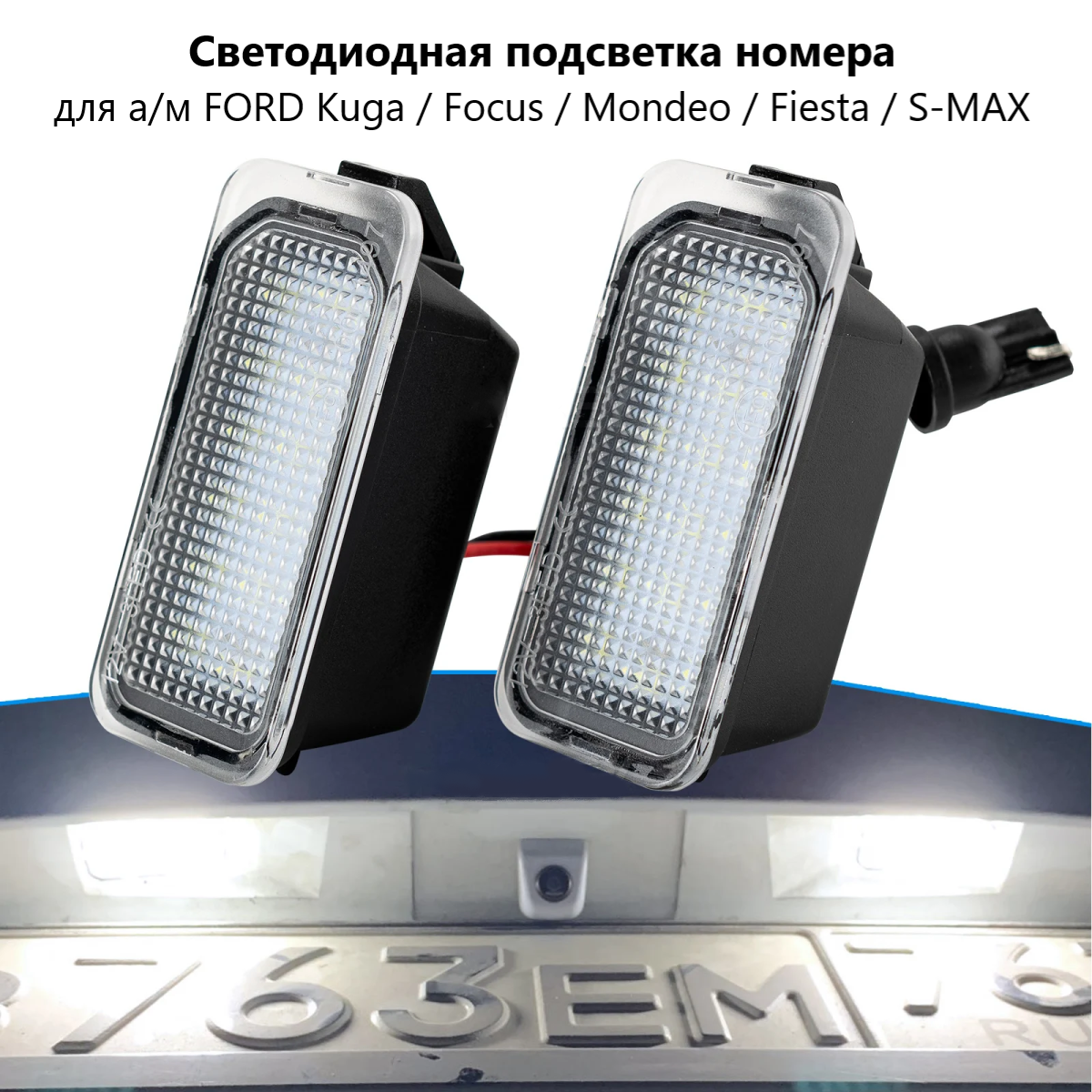 внимание! Перед покупкой осмотрите визуально подсветку на своем автомобиле. Она должна иметь форму прямоугольника, если фонари другой формы, то данные фонари не подойдут! (особенно относится к фокус 2)
