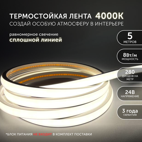 Купить Светодиодная лента для бани и сауны 5 метров 4000К термостойкая в силиконе 24v с доставкой по всей России. Светодиодная лента для бани и сауны 5 метров 4000К термостойкая в силиконе 24v: сравнение цен, характеристики, фото, актуальное наличие и цены.