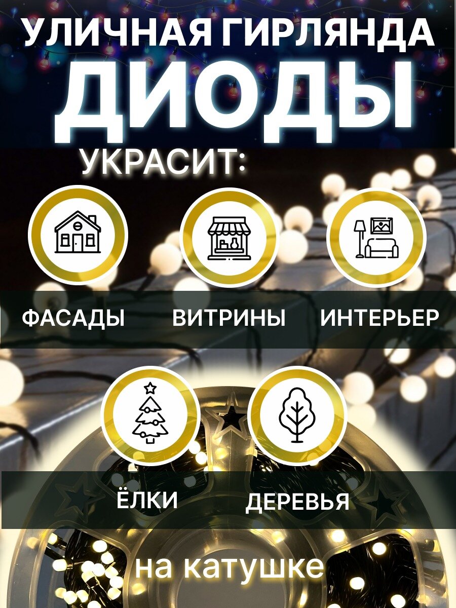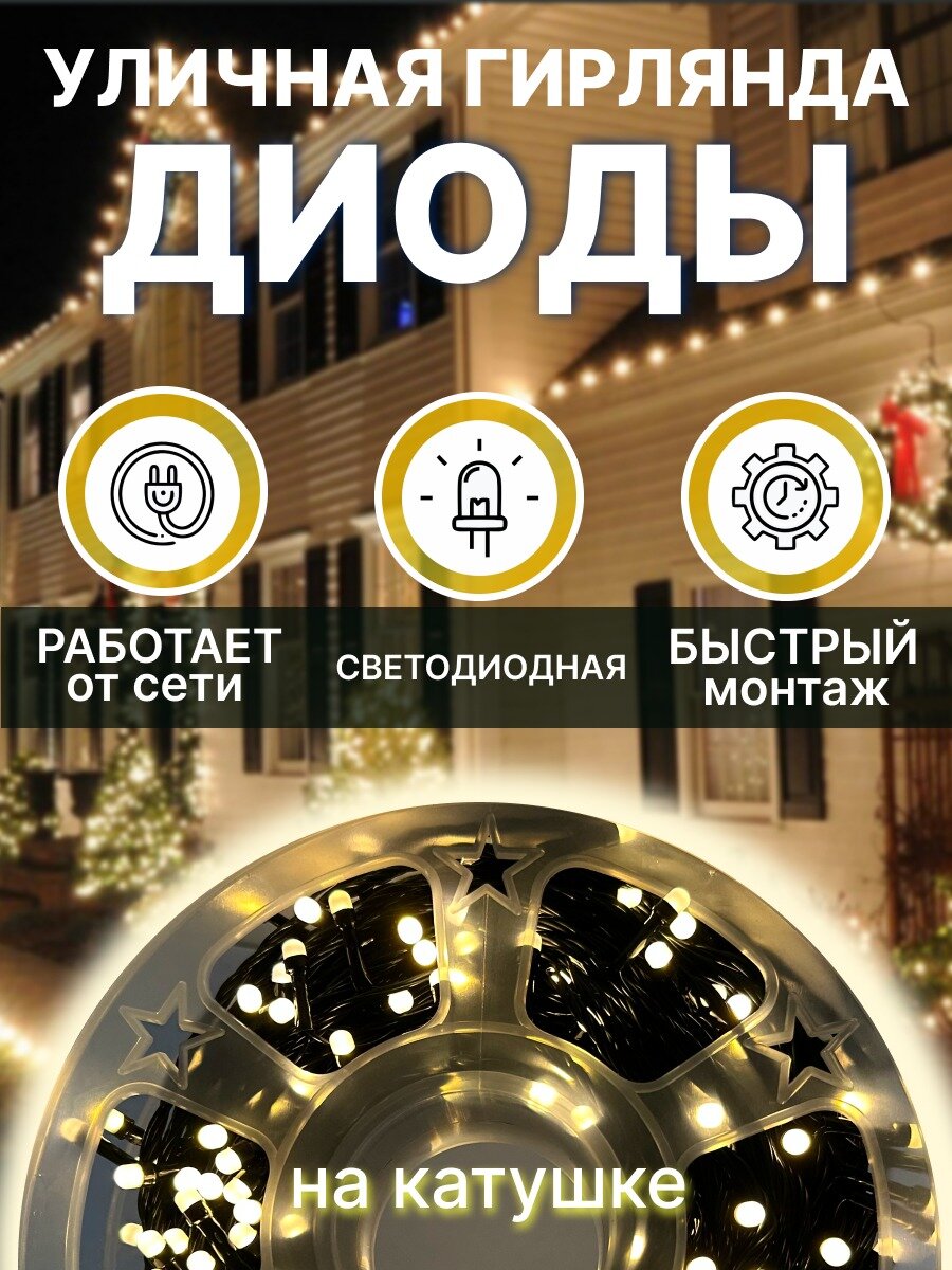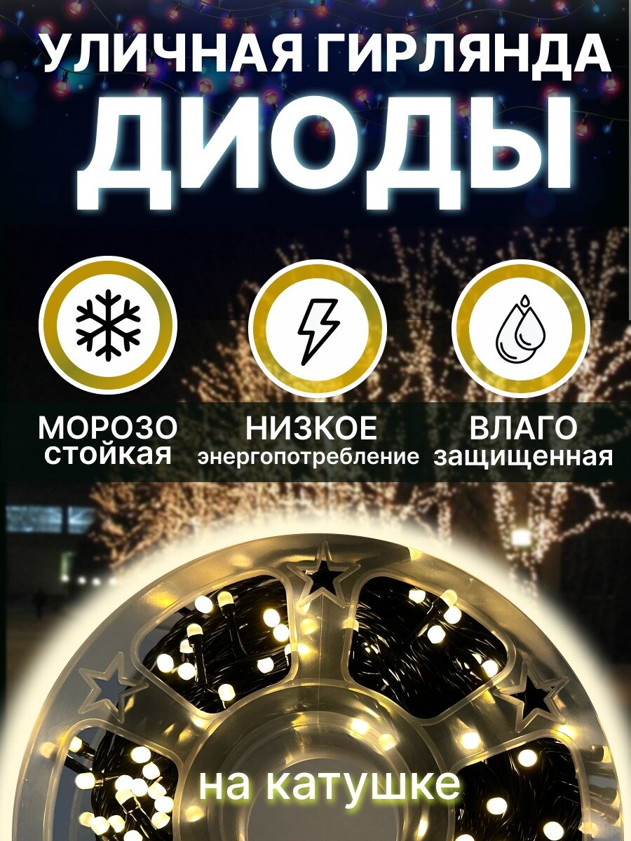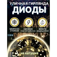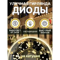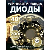 Светодиодная уличная гирлянда «LED» на катушке, 40 метров, 200 диодов, цвет теплый белый: сравнение цен, характеристики, фото, актуальное наличие и цены.