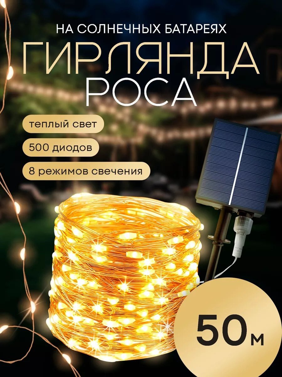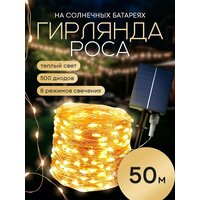 Светодиодная уличная нить роса 50 м теплый на солнечных батареях/ гирлянда на елку роса новогодняя, теплый свет, 50 метров: сравнение цен, характеристики, фото, актуальное наличие и цены.