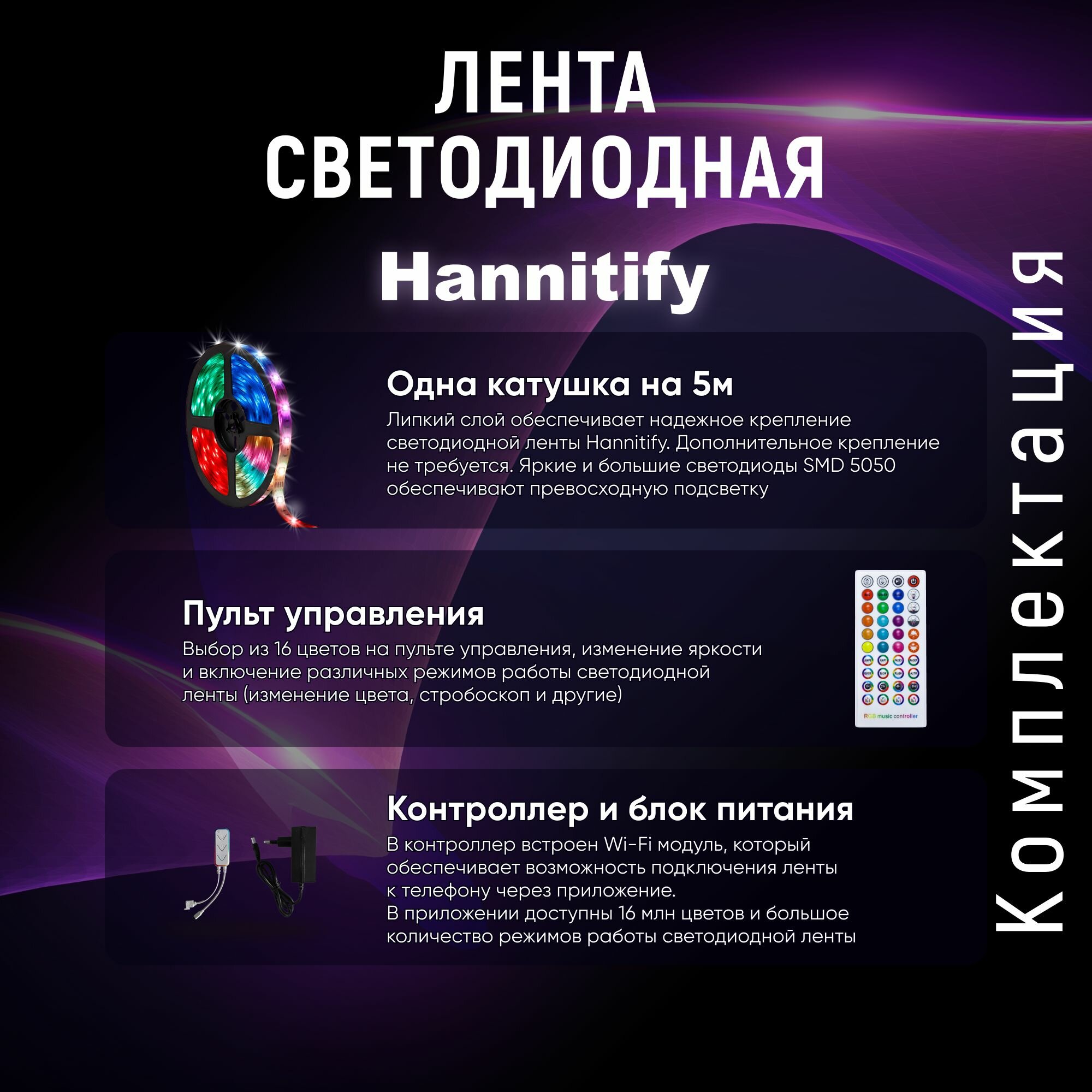 - Светодиодная лента Hannitify состоит из SMD светодиодов RGB.
