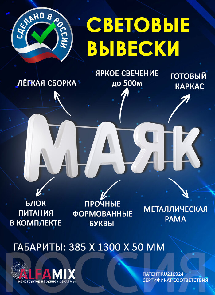 Купить Светодиодная вывеска алфаmix Маяк, акриловая, с подсветкой, уличная, 38.5 см с доставкой по всей России. Светодиодная вывеска алфаmix Маяк, акриловая, с подсветкой, уличная, 38.5 см: сравнение цен, характеристики, фото, актуальное наличие и цены.