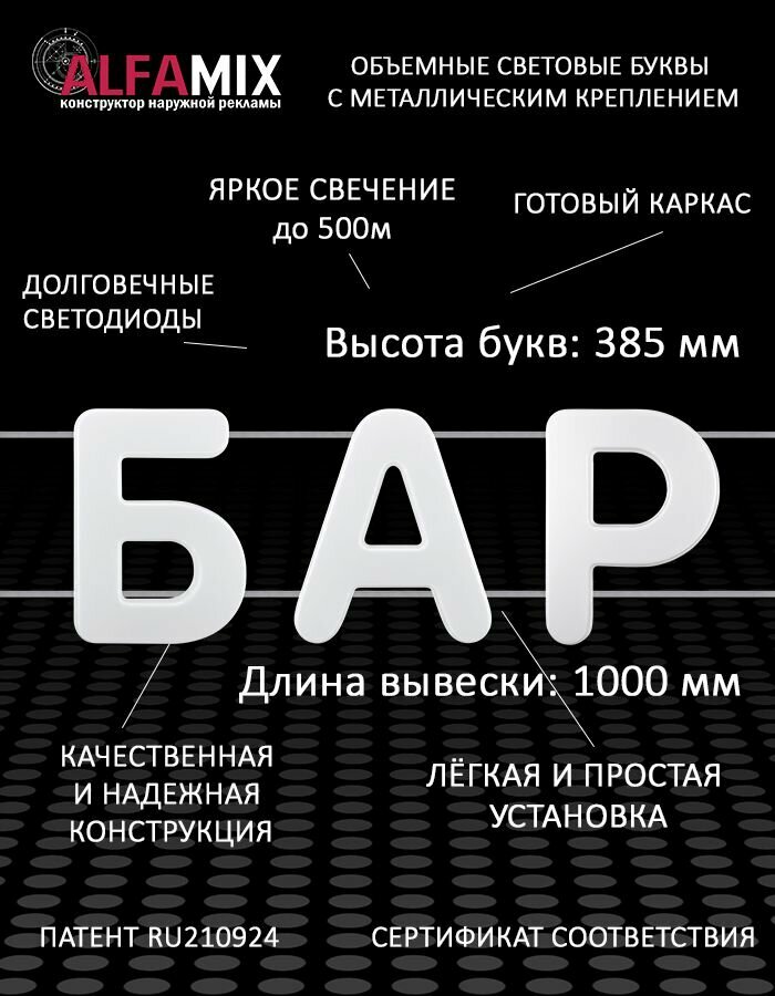 Светодиодная вывеска БАР / Объемные световые буквы h.38,5 см: сравнение цен, характеристики, фото, актуальное наличие и цены.