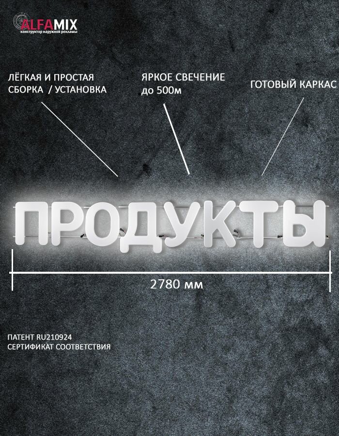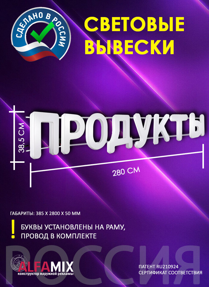 Светодиодная вывеска Продукты / Объемные световые буквы h.38,5 см: сравнение цен, характеристики, фото, актуальное наличие и цены.
