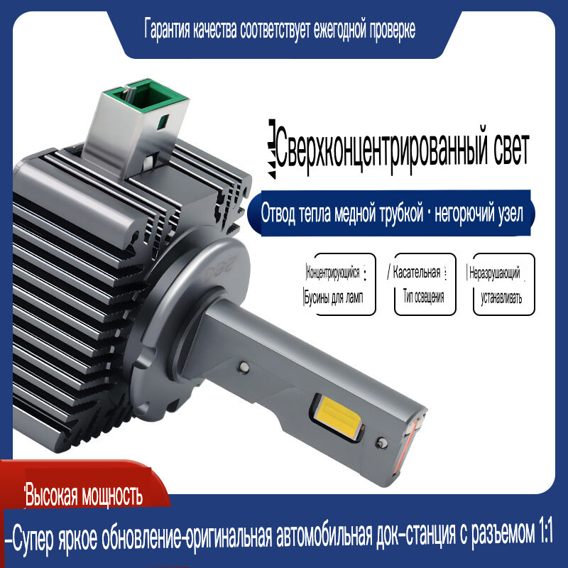 Технические характеристики и преимущества: • Энергопотребление: лампа потребляет всего 45 Ватт, что делает ее не только мощной, но и экономичной. • Световой поток: в 10000 люмен, световая температура 4300K создает дневной белый свет. • Материалы: использование меди и алюминия в конструкции обеспечивает долговечность автомобильной лампы. • Инновационная система терморегулирования продолжит исправно функционировать даже после аварийной остановки охлаждающего вентилятора. Она включает в себя три медные трубки, медный сердечник и вентилятор, который эффективно отводит тепло и поддерживает оптимальную рабочую температуру, предотвращая перегрев.