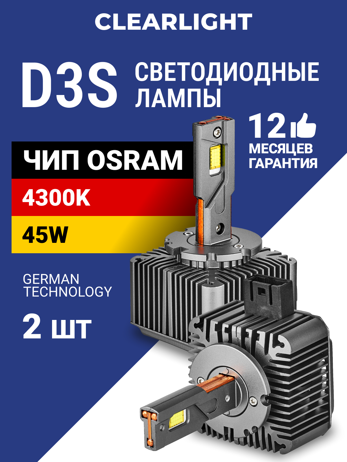 Купить Светодиодные лампы D3S Clearlight LED ORIGINAL 10000 lm, 4300K 2шт с доставкой по всей России. Светодиодные лампы D3S Clearlight LED ORIGINAL 10000 lm, 4300K 2шт: сравнение цен, характеристики, фото, актуальное наличие и цены.