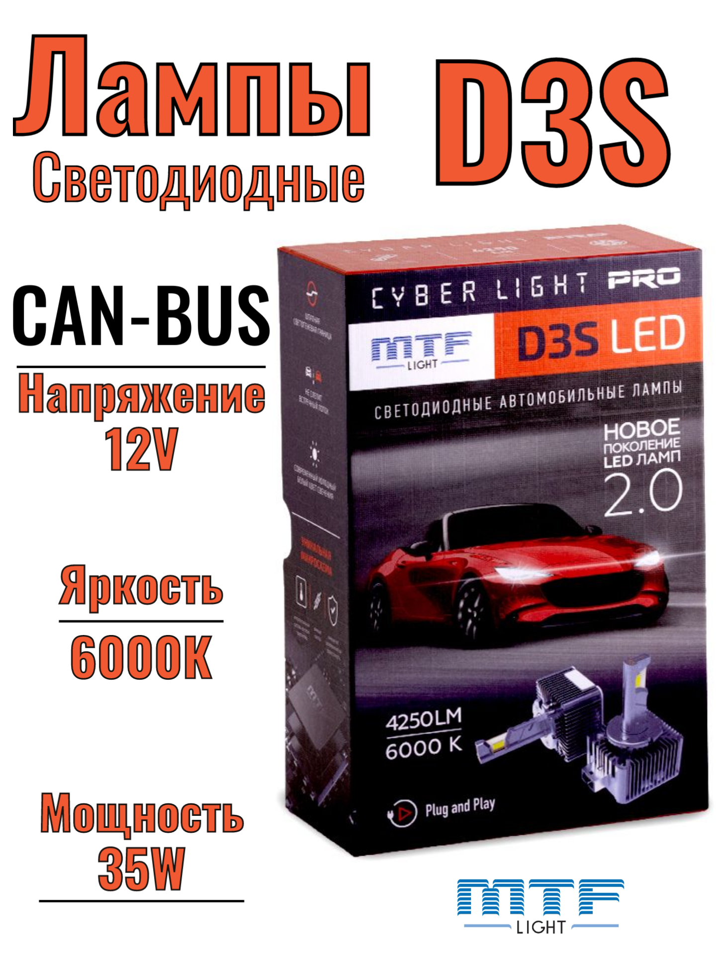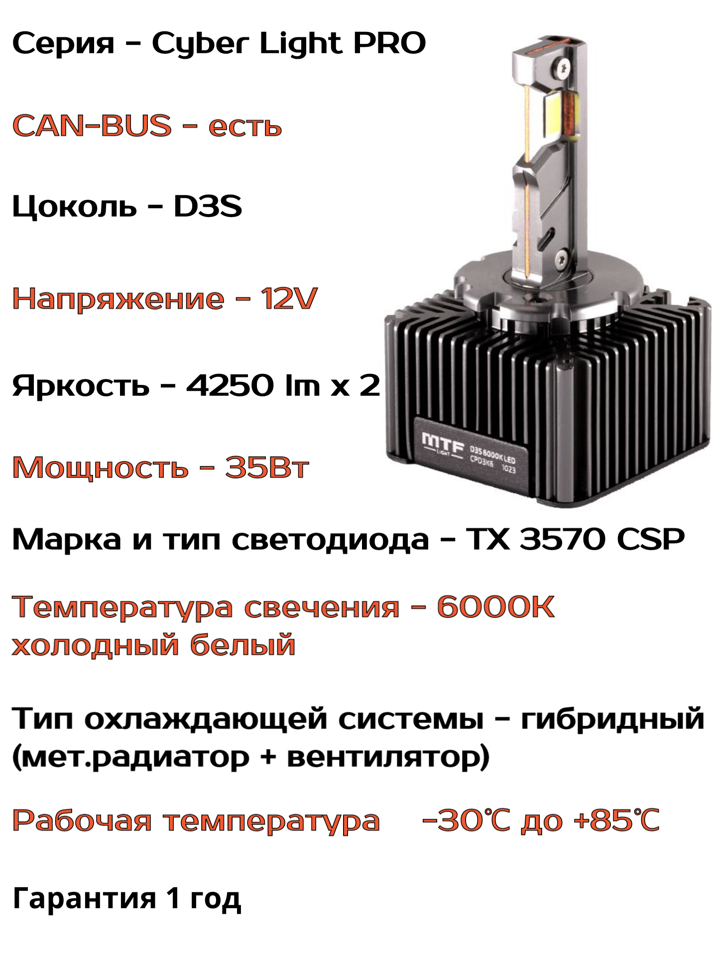 Светодиодные LED лампы D3S MTF Light серия CYBER LIGHT PRO 6000K, кулер, комплект.: сравнение цен, характеристики, фото, актуальное наличие и цены.
