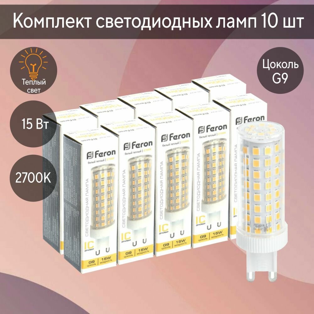 Светодиодная капсульная лампочка JCD9 G9 15W 2700K (комплект из 10 штук) серии LB-437 38212 - в официальном магазине бренда Feron – оптимальное качество по разумной цене.