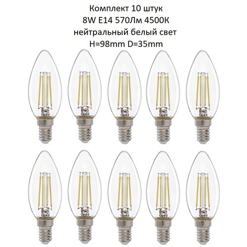 Купить General, Диммируемый филамент, Комплект из 10 шт, 8 Вт, Цоколь E14, 4500К, Форма лампы Груша, CS с доставкой по всей России.