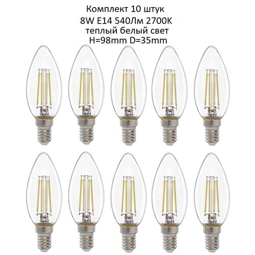 Купить General, Диммируемый филамент, Комплект из 10 шт, 8 Вт, Цоколь E14, 2700К, Форма лампы Свеча, CS с доставкой по всей России.