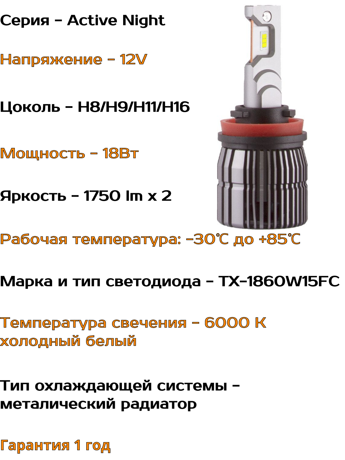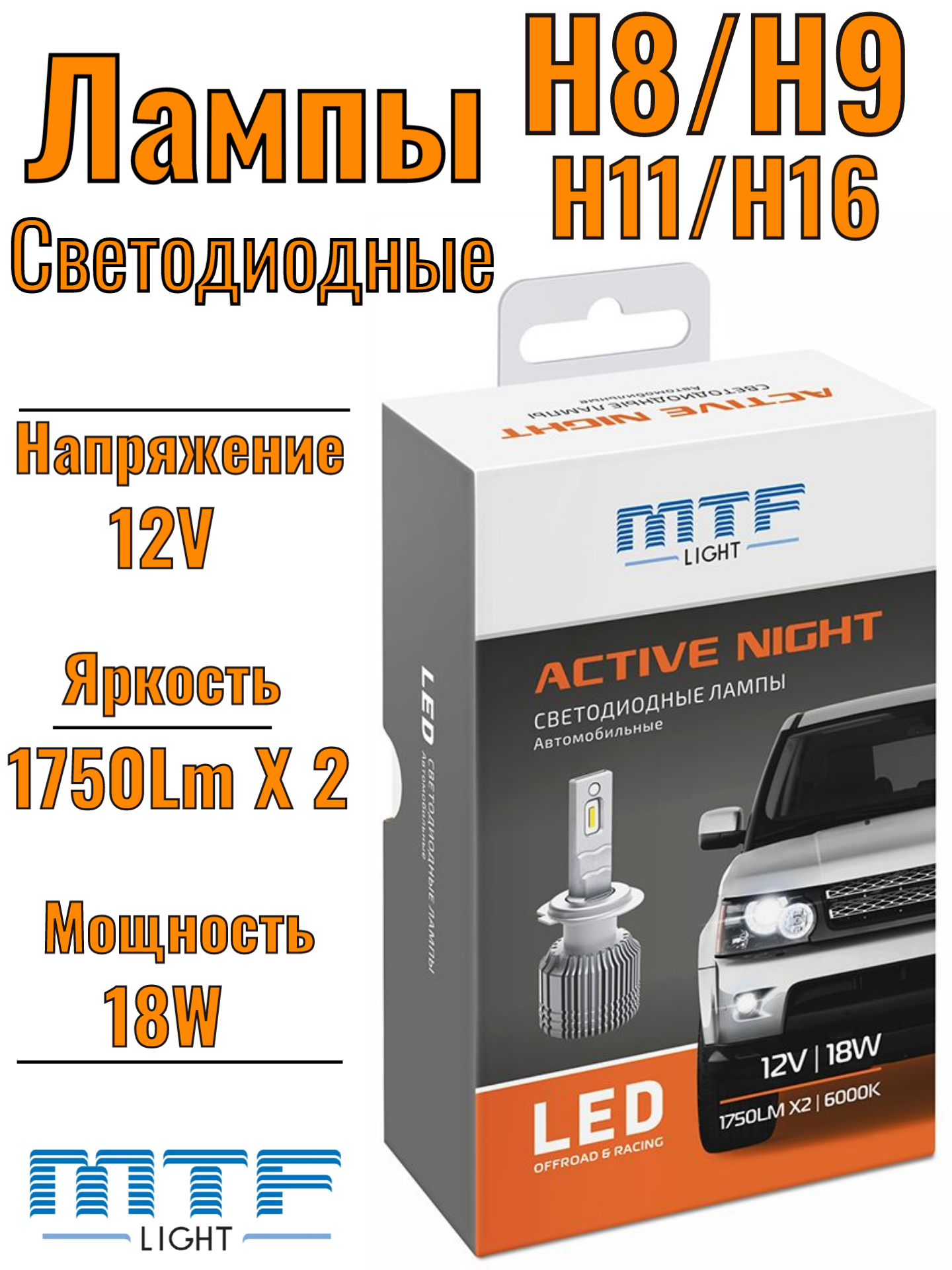 Купить Светодиодные лампы H11 H8 H9 H16, MTF Light серия ACTIVE NIGHT, 18W, 1750lm, 6000K, комплект. с доставкой по всей России. Светодиодные лампы H11 H8 H9 H16, MTF Light серия ACTIVE NIGHT, 18W, 1750lm, 6000K, комплект.: сравнение цен, характеристики, фото, актуальное наличие и цены.