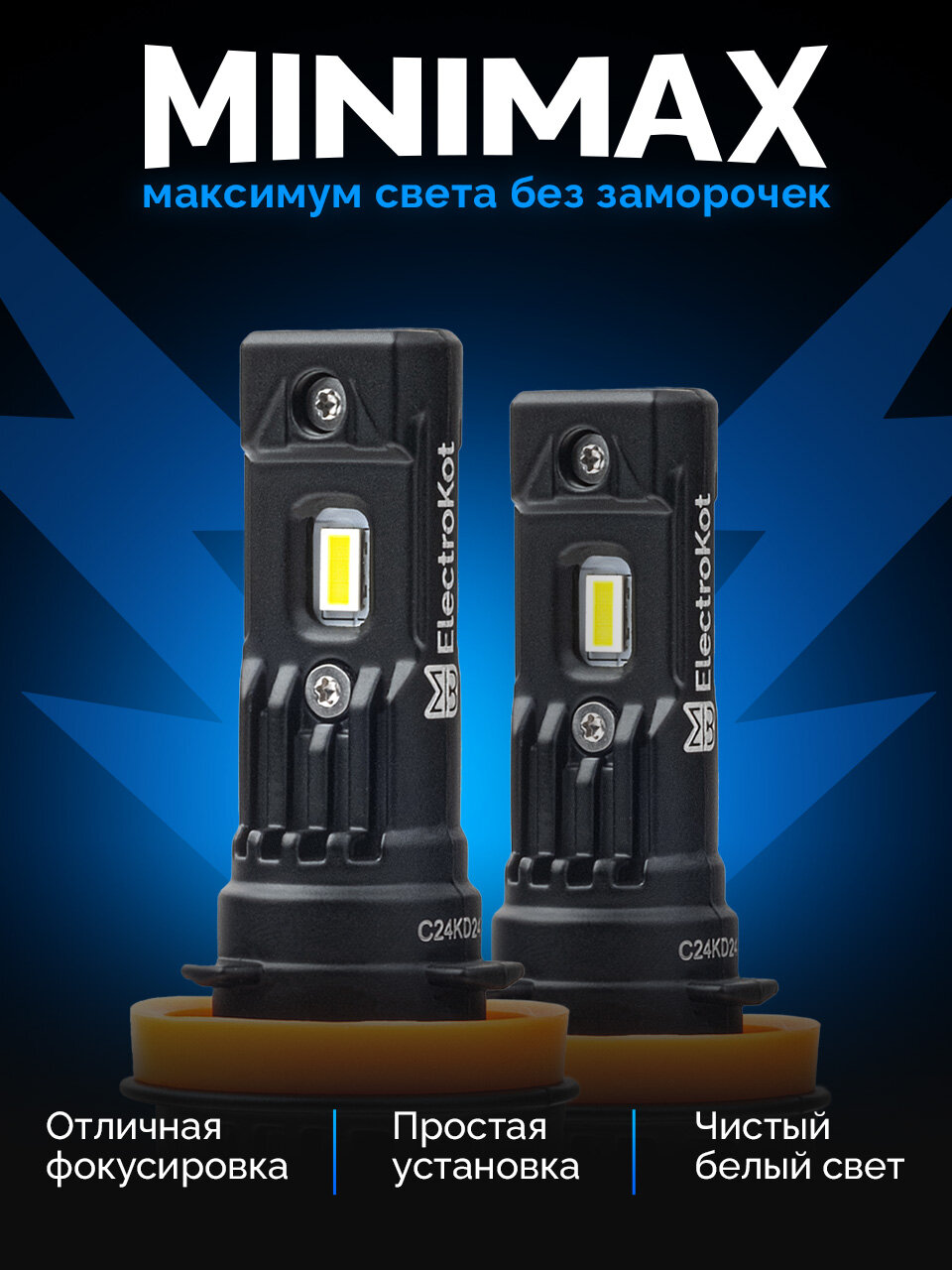 Купить Светодиодные лампы H11 (H8, H9, H16jp) для авто ElectroKot MiniMax белый свет 5000K-6000K 2 шт, в ближний/дальний/ПТФ с доставкой по всей России.