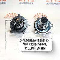 Яркие светодиодные лампы H4 от Antidark с высокоскоростным встроенным кулером предназначены для установки в фары любых автомобилей, включая отечественные модели, такие как Лада Гранта, иномарки и грузовые машины. Особенностью этих ламп является их совместимость с цоколем H19, что делает их универсальными для широкого спектра автомобилей.