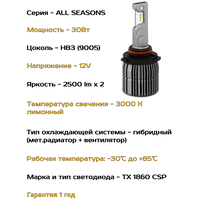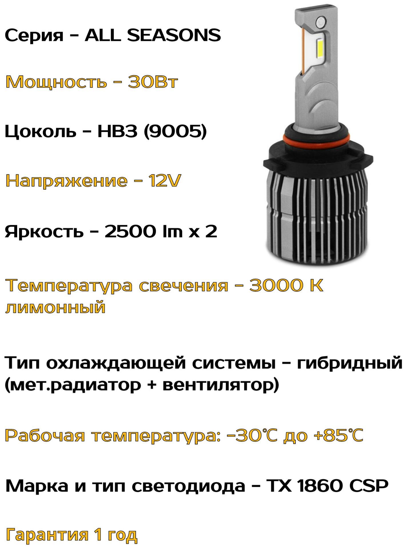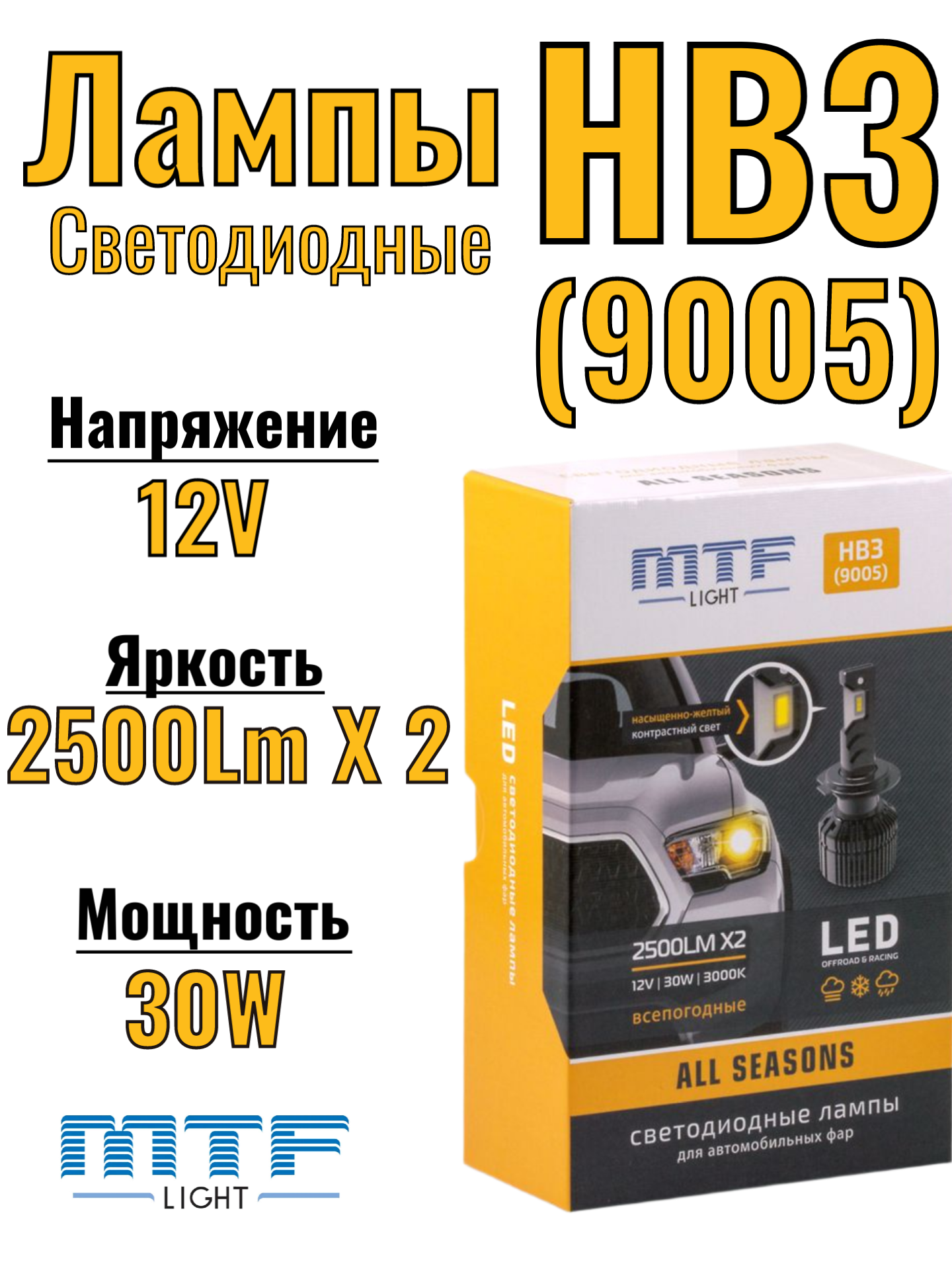 Светодиодные лампы HB3 (9005) MTF Light, серия ALL SEASON LED, 30W, 2500lm, 3000K, кулер, комплект.: сравнение цен, характеристики, фото, актуальное наличие и цены.