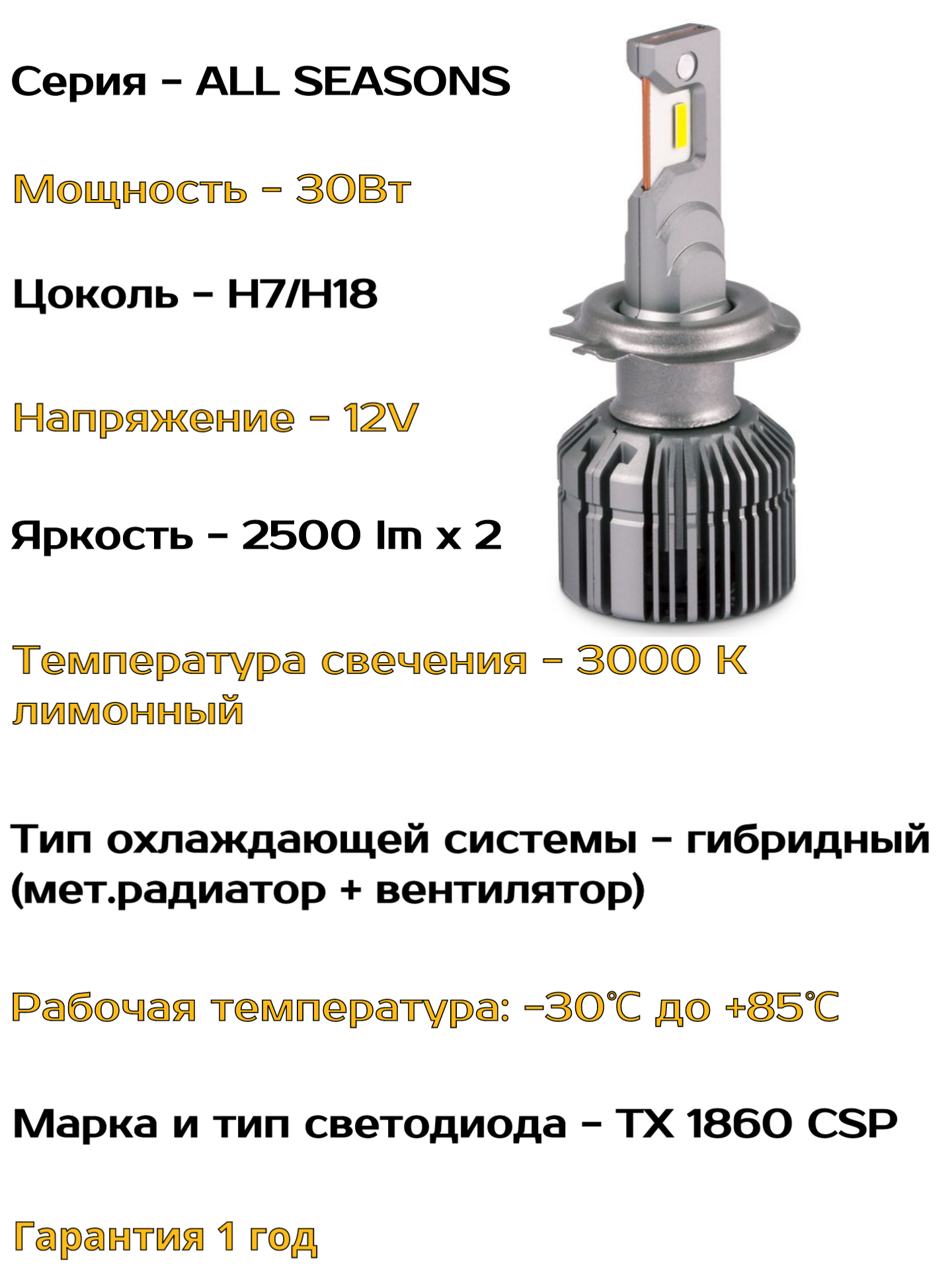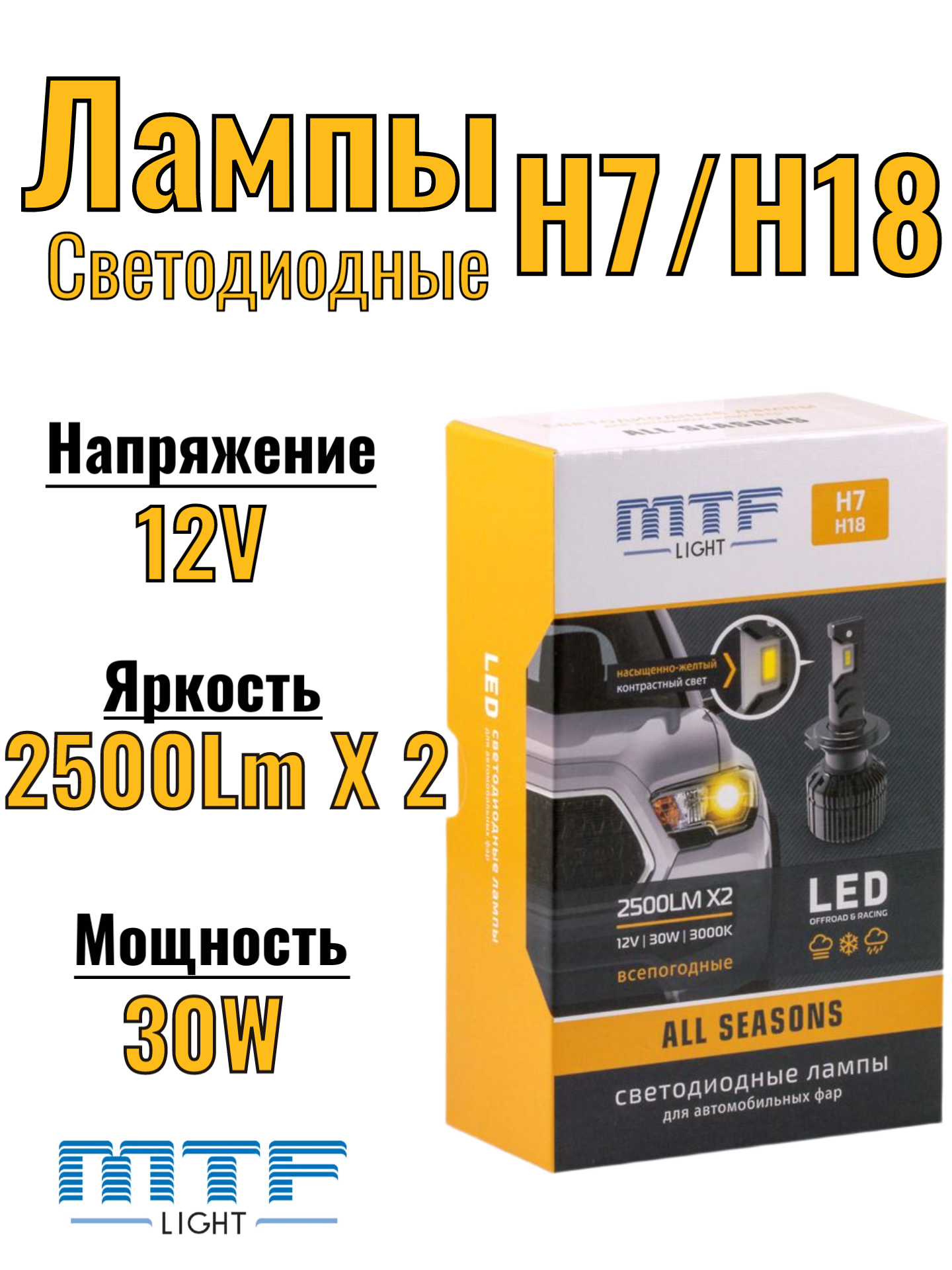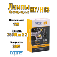 Светодиодные лампы H7, H18 MTF Light, серия ALL SEASON LED, 30W, 2500lm, 3000K, кулер, комплект.: сравнение цен, характеристики, фото, актуальное наличие и цены.