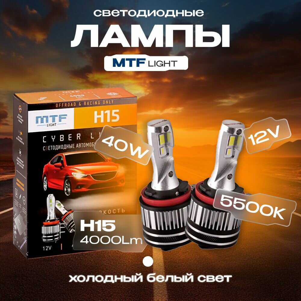 Светодиодные лампы MTF Light CYBER LIGHT, H15, 12V, 40W\15W, 4000lm, 5000K, 2 шт.: сравнение цен, характеристики, фото, актуальное наличие и цены.