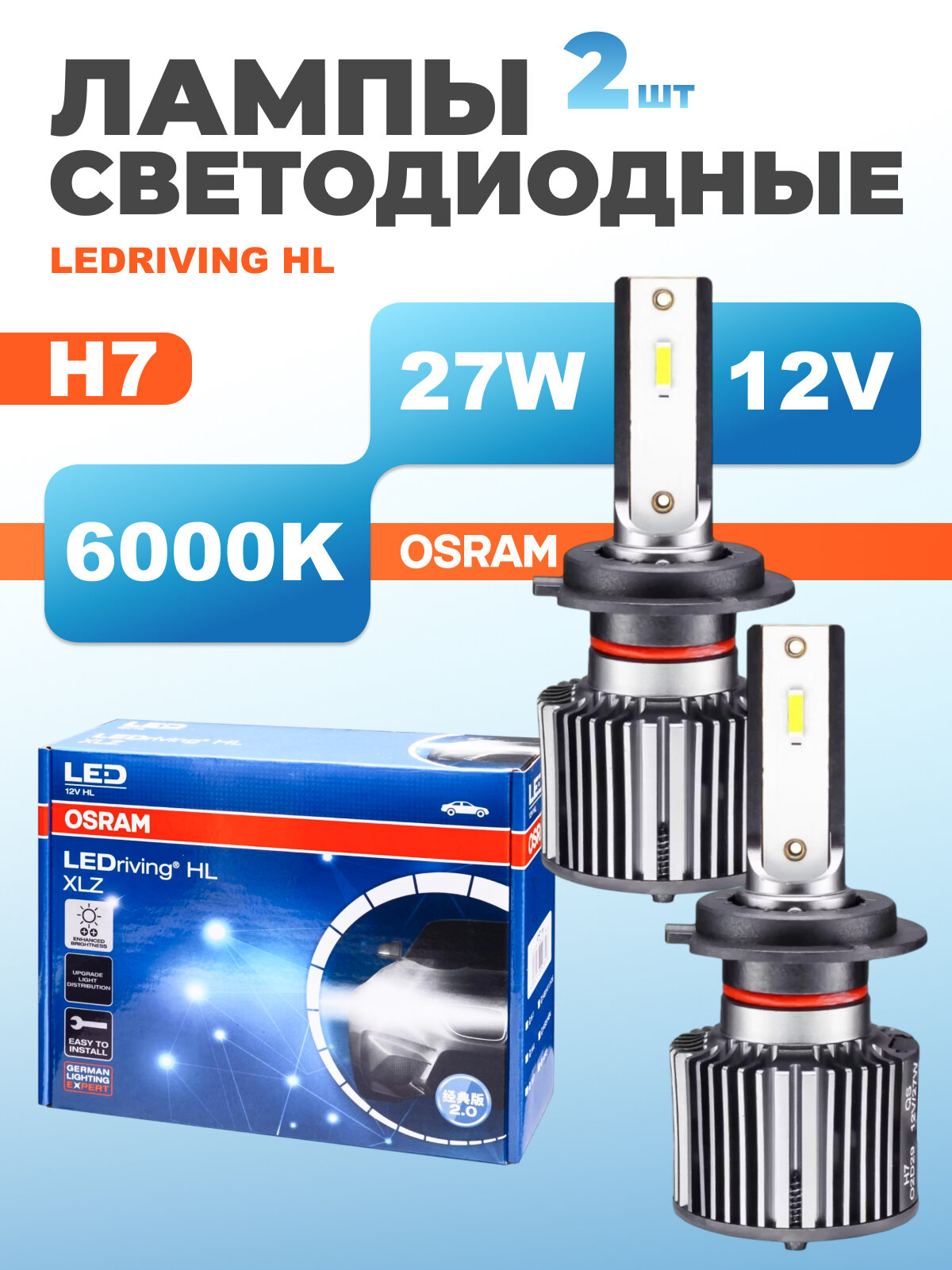 Классические светодиодные лампы дальнего и ближнего света OSRAM XLZ представляют собой наиболее удобное решение для обновления существующих фар-обеспечивая стильный холодный белый вид с 6000 K, а также улучшенную видимость дороги.