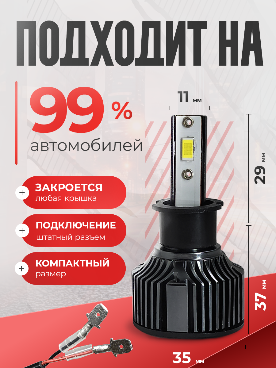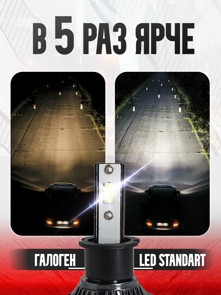 - Холодный белый свет 5500К обеспечивает комфортное освещение, не ослепляя встречных водителей.