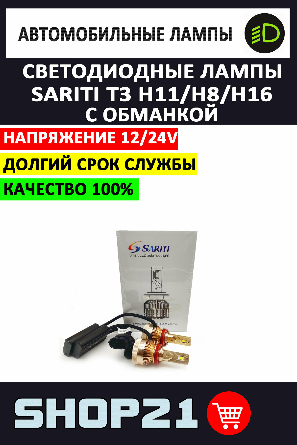 Купить Светодиодные LED лампы Sariti T3 H8 / H11 / H16 12-24 В с обманкой (2 шт.) с доставкой по всей России.