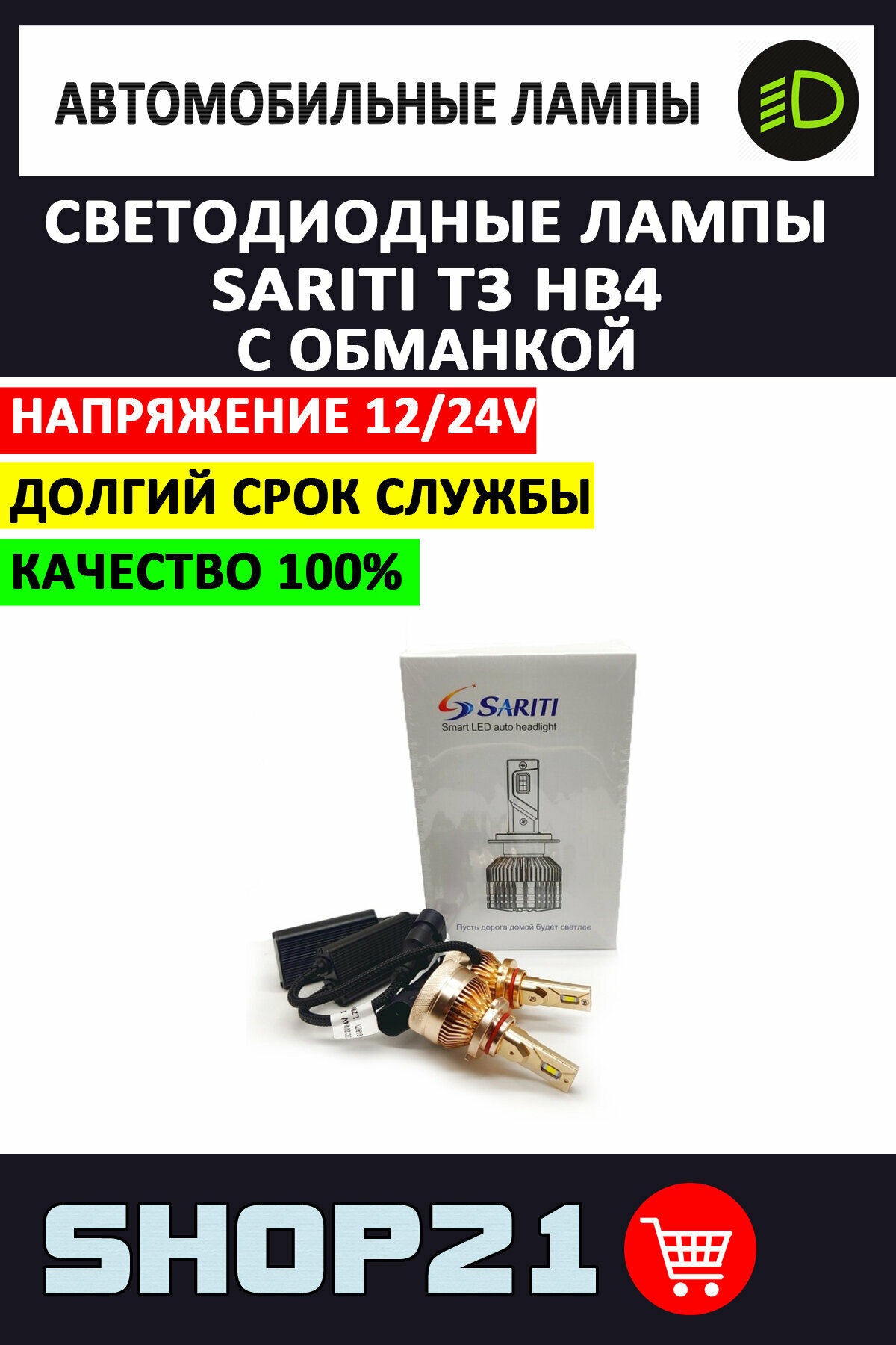 Купить Светодиодные LED лампы Sariti T3 HB4 12-24 В с обманкой (2 шт.) с доставкой по всей России. Светодиодные LED лампы Sariti T3 HB4 12-24 В с обманкой (2 шт.): сравнение цен, характеристики, фото, актуальное наличие и цены.
