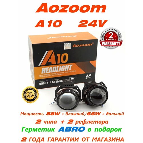 Оригинальные светодиодные би-лед модули (линзы) Biled Aozoom A10 Truck, 24V, 5500K, 3.0" под крепеж Хелла 3R для грузовой и спец техники с напряжением питания 24 Вольта.