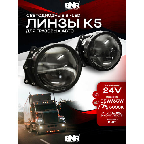 Светодиодные линзы BNR K5 для грузовых авто 24В 3 дюйма 65W 5500K/ 2 режима Ближний + дальний белый свет: сравнение цен, характеристики, фото, актуальное наличие и цены.
