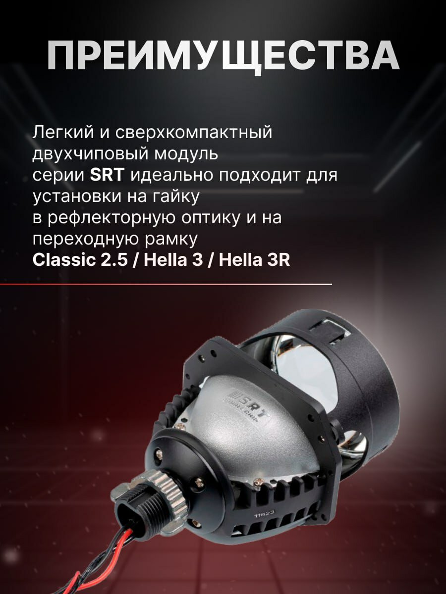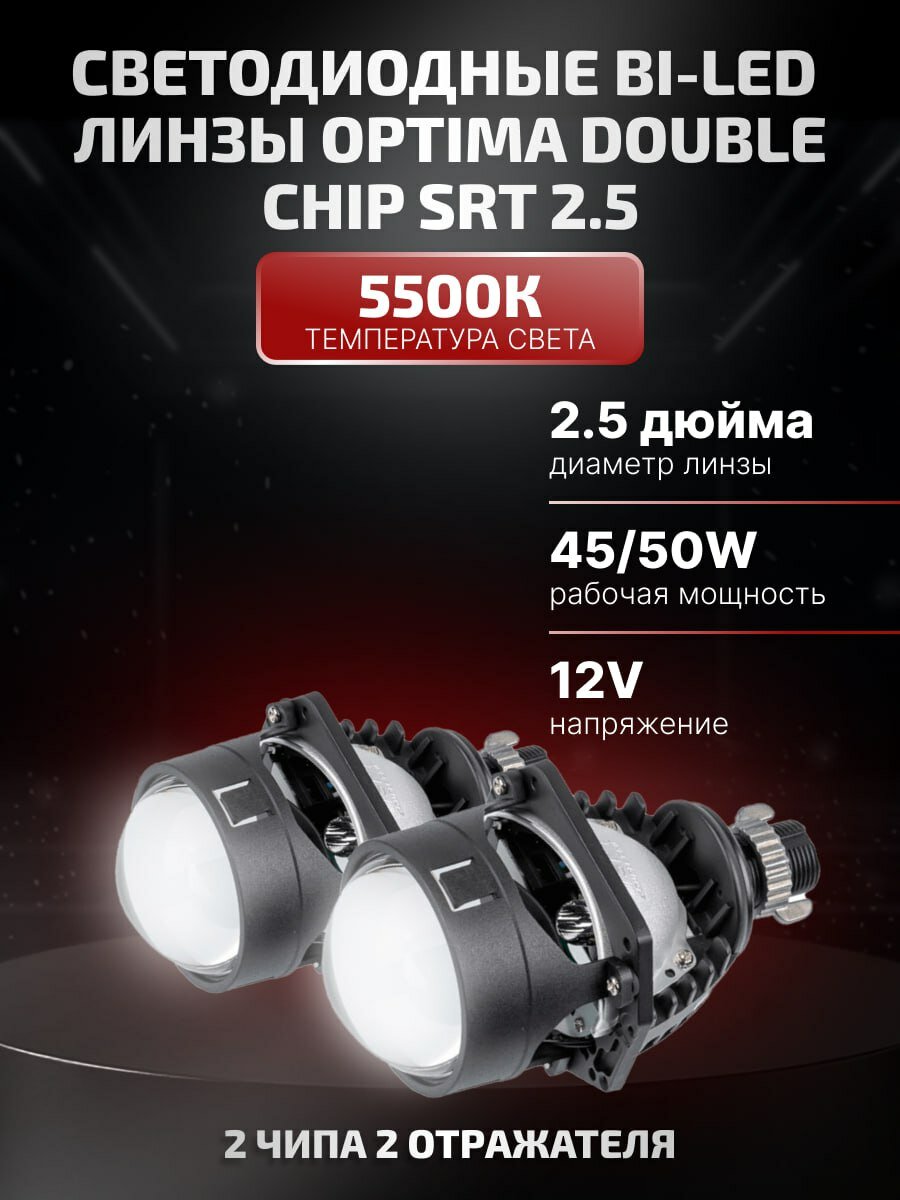 Купить Светодиодные линзы Optima Bi-LED SRT Double Chip 2.5 дюйма 2 чипа 2 отражателя комплект с доставкой по всей России.