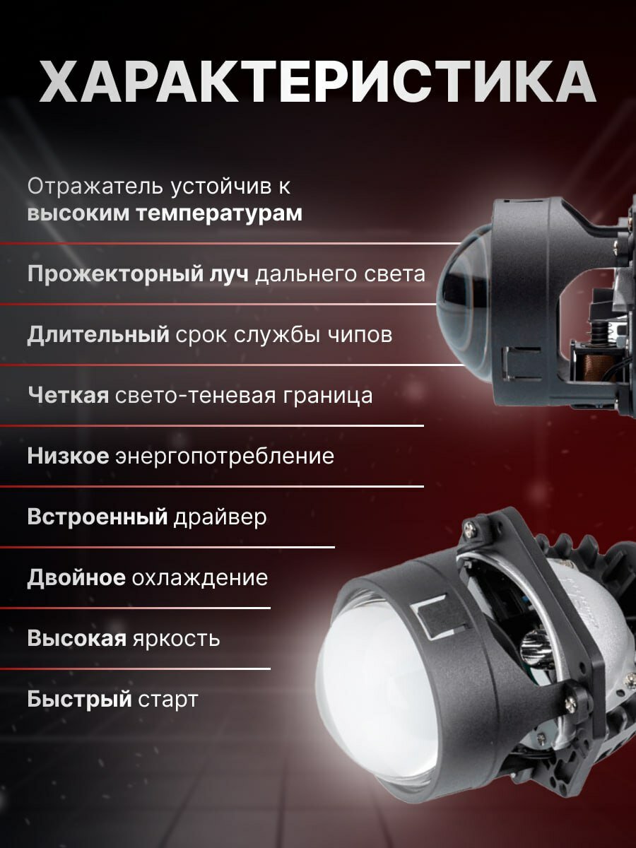 Светодиодные линзы Optima Bi-LED SRT Double Chip 2.5 дюйма 2 чипа 2 отражателя комплект: сравнение цен, характеристики, фото, актуальное наличие и цены.