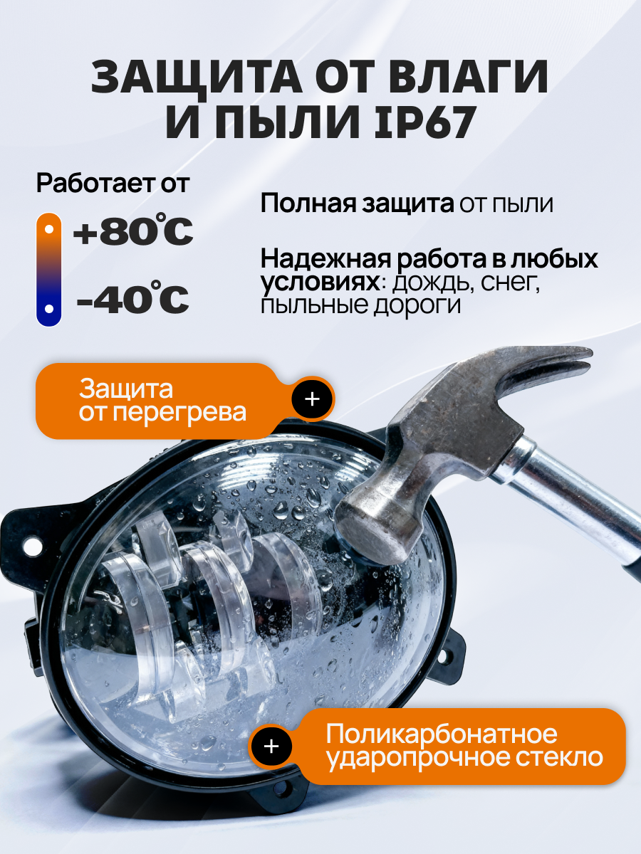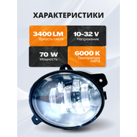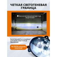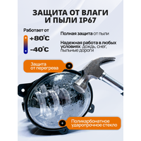 Туманки Ларгус оснащены двумя светодиодными компонентами мощностью по 5 Вт, в общей сумме составляющими 70 Вт. Благодаря такому решению, противотуманные фары Лада Гранта и других моделях автомобилей обеспечивают отличное освещение, особенно по бокам дороги, что способствует повышению безопасности движения.