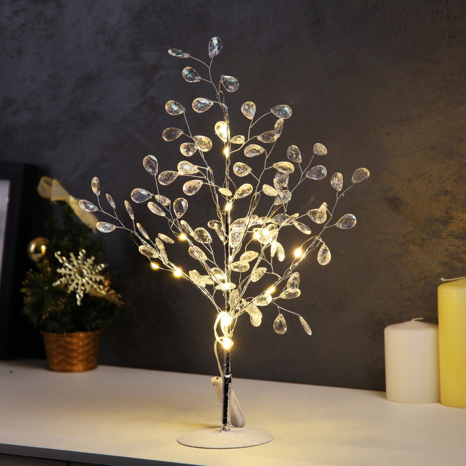 Светодиодный куст «Лепестки» 35 × 26 × 3 см, 10 LED, постоянное свечение, от батареек CR2032х2 (в комплекте), свечение тёплое белое: сравнение цен, характеристики, фото, актуальное наличие и цены.