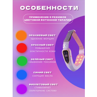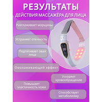 Лифтинг массажёр для лица - это простой и действенный косметический аппарат, который за несколько процедур поможет восстановить тонус мышц, снять отечность, улучшить цвет лица. При регулярном применении вибромассажер активизирует мышечный слой, микро циркуляцию, регенеративные процессы и выработку коллагена, возвращая коже здоровый, ухоженный вид. При необходимости избавиться против второго подбородка используйте массажер для шеи как бандаж. Массажер косметический имеет пять цветовых фотонных излучений.