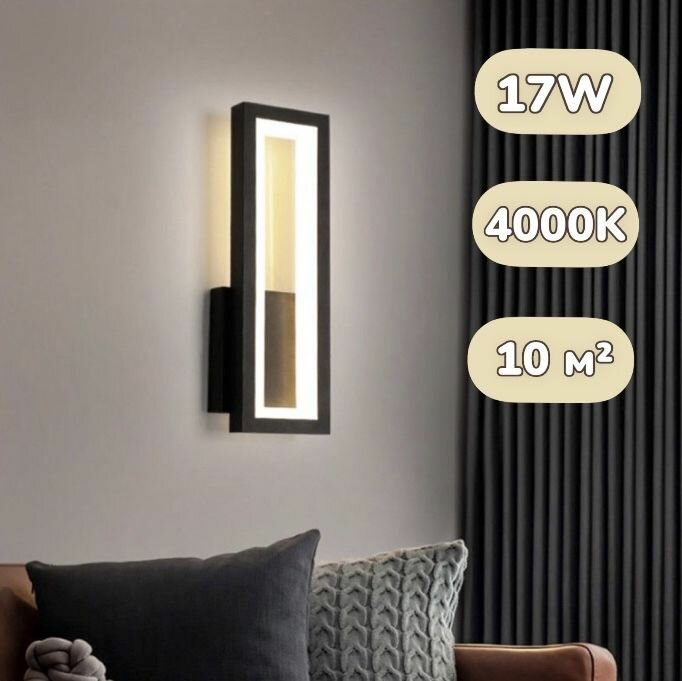 Светодиодный настенный светильник Бра прямоугольный 17Вт Черный: сравнение цен, характеристики, фото, актуальное наличие и цены.