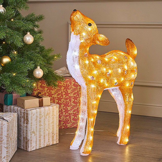 Купить Светодиодный Олень Малышка Лана 77 см, 100 теплых белых LED ламп, акрил, IP44 с доставкой по всей России.