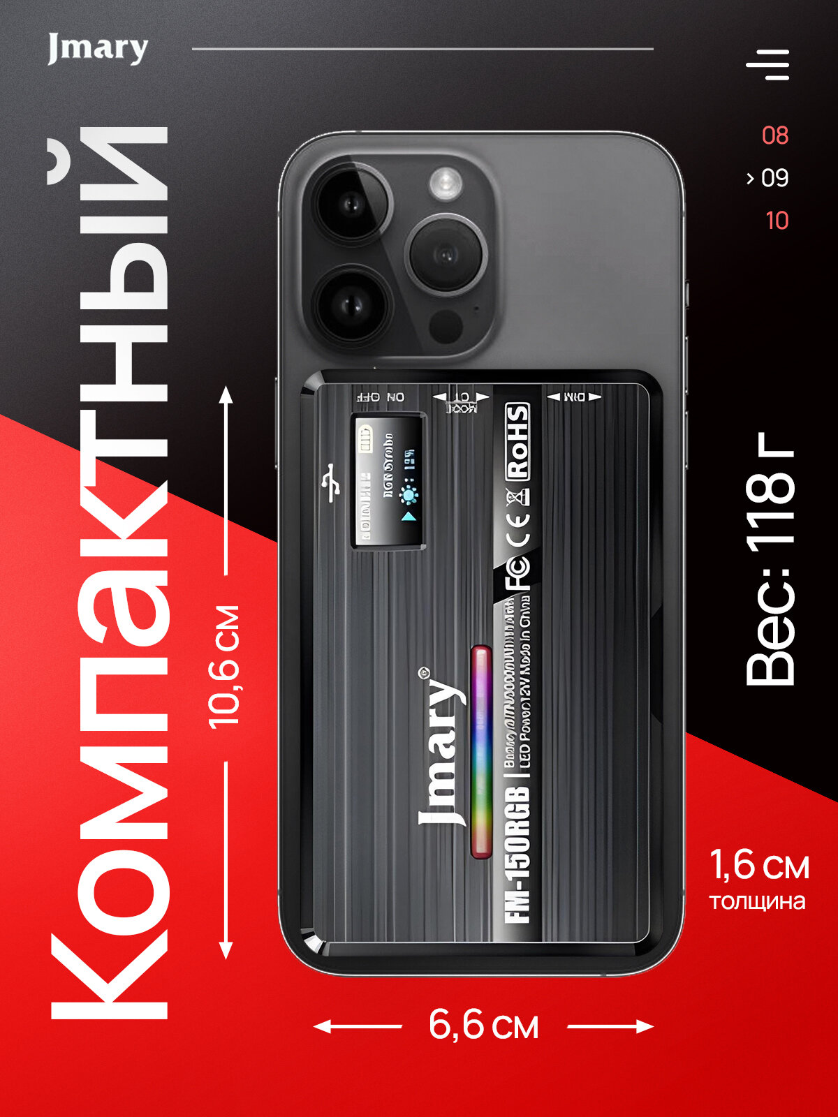 Светодиодный осветлитель для фото и видео съемки JMARY FM-150RGB, 3000mAh, черный: сравнение цен, характеристики, фото, актуальное наличие и цены.