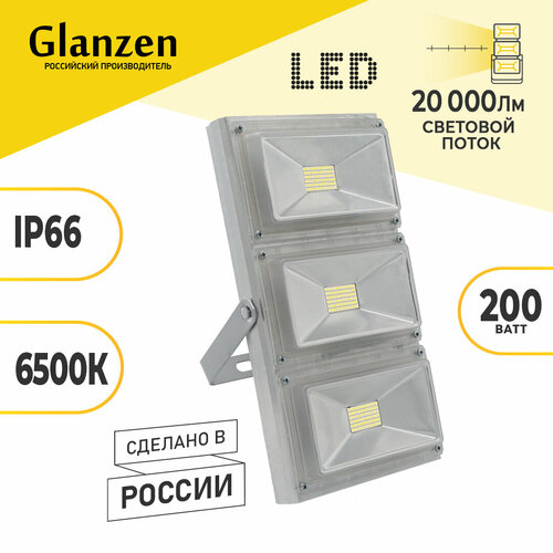 Купить Прожектор GLANZEN PRO-0020-200, IP66, 200 Вт, холодный белый свет с доставкой по всей России.
