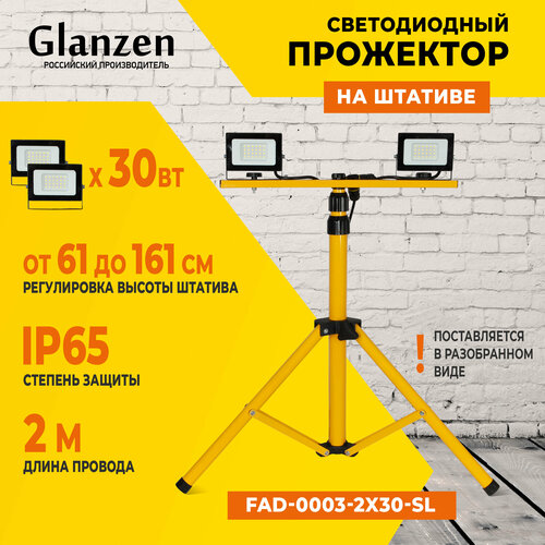 Светодиодный прожектор на штативе 2×30 Вт GLANZEN FAD-0003-2X30-SL для освещения строительных площадок: сравнение цен, характеристики, фото, актуальное наличие и цены.