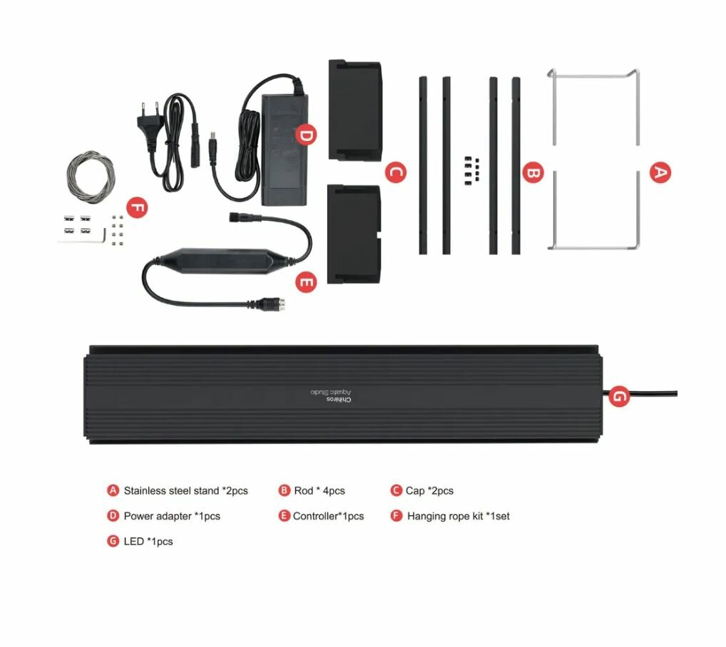 | Подробная комплектация | • Светодиодный светильник • Контроллер • Блок питания с евровилкой • Комплект ножек с винтами • Индивидуальная упаковка • Паспорт |