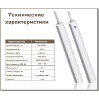 - Светодиодный светильник 250см (125 см +125см), со встроенным датчиком вк /выкл – 1шт.