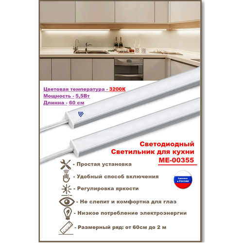 Светодиодный светильник для кухни под навесные шкафы, с включателем от взмаха руки, 60см, 3200К-тёплый.: сравнение цен, характеристики, фото, актуальное наличие и цены.