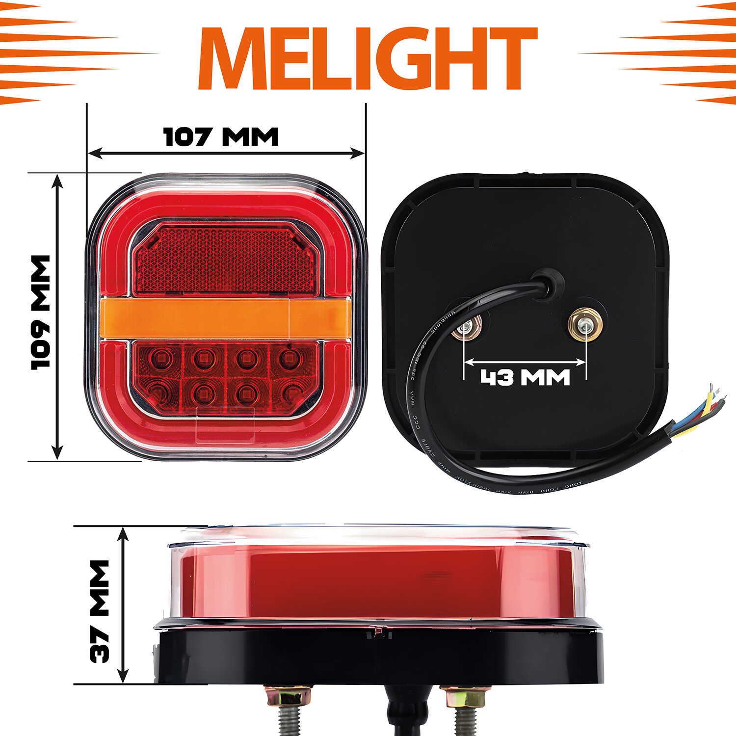 Светодиодный задний фонарь MeLight для грузовика и прицепа 2 шт, 12В/24В, квадратный, с бегущим поворотником и подсветкой номера: сравнение цен, характеристики, фото, актуальное наличие и цены.