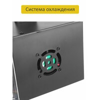 Лазерный эффект: лазерный более 20 узоров (цвет: зеленый 50 мВт, красный 200 мВт). Разнообразные узоры из двух отверстий прибора движутся по часовой или против часовой стрелке, изменяя свои цвета на зеленый и красный (из одного отверстия светит зеленый лазер, из второго - красный) или, одновременно, светят из двух отверстий зеленый и красным цветом.