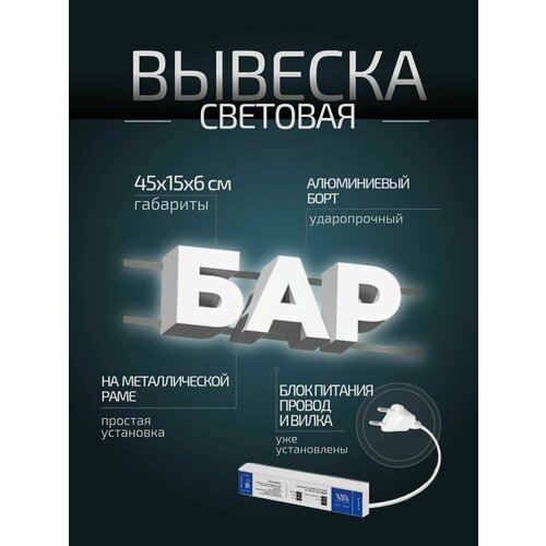 Купить Световая вывеска «Бар», объемные буквы, размер 45х15х6см с доставкой по всей России. Световая вывеска «Бар», объемные буквы, размер 45х15х6см: сравнение цен, характеристики, фото, актуальное наличие и цены.