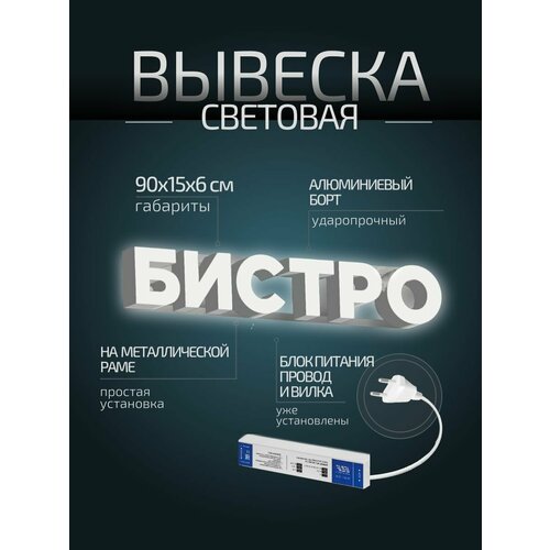 Купить Световая вывеска «Бистро», объемные буквы, размер 90х15х6см с доставкой по всей России. Световая вывеска «Бистро», объемные буквы, размер 90х15х6см: сравнение цен, характеристики, фото, актуальное наличие и цены.