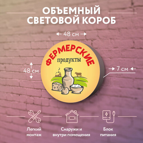 Световая вывеска «Фермерские продукты» Объемный короб с подсветкой Лайтбокс круглый: сравнение цен, характеристики, фото, актуальное наличие и цены.